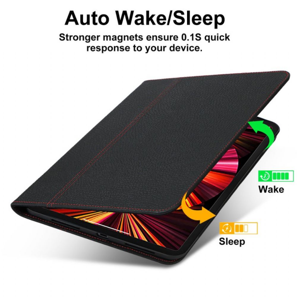 Schützen Sie Ihr gesamtes iPad Pro 11'' (2021) mit dieser High-End-Hülle aus echtem Litschileder, die auch als freihändige Halterung dient.
