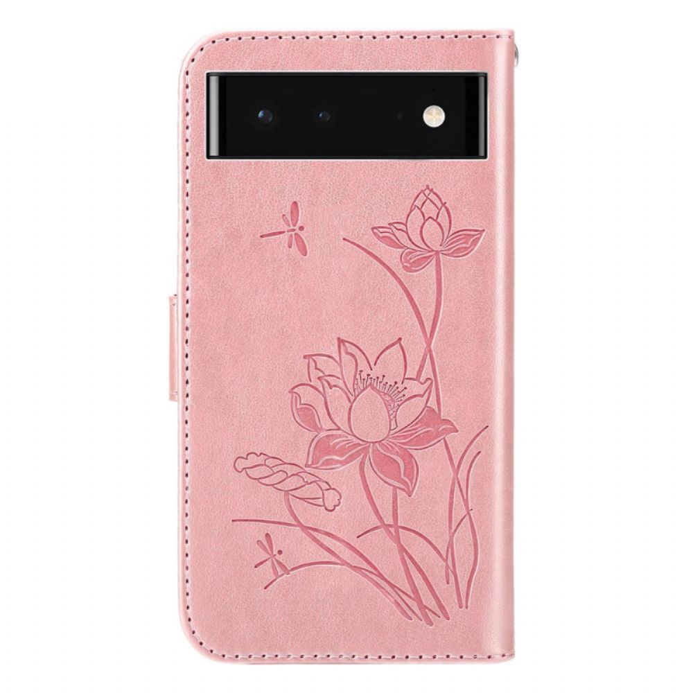 Schützen Sie Ihr Google Pixel 7 vor Witterungseinflüssen mit dieser Hülle im Lotus-Design, die auch als Geldbörse dient.