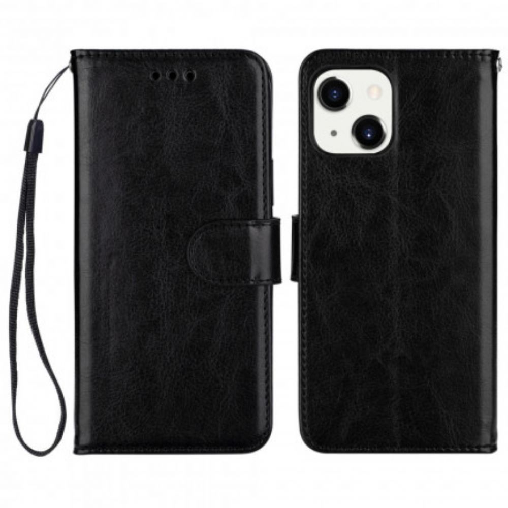 Flip Case Für iPhone 13 Mit Kordel Farbiger Riemen In Lederoptik