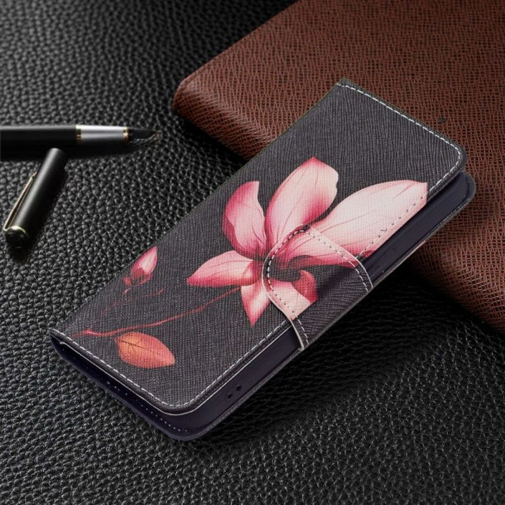 Flip Case Für iPhone 15 Rosa Blume Auf Schwarzem Hintergrund