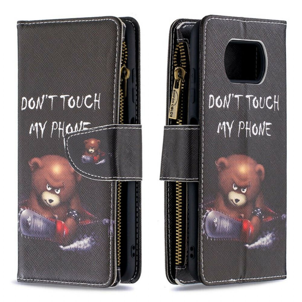 Ein gefährlicher Bär auf einer multifunktionalen Hülle mit 1 Reißverschlusstasche, um Ihr Xiaomi Poco X3 / X3 Pro / X3 NFC auf praktische Weise zu schützen.