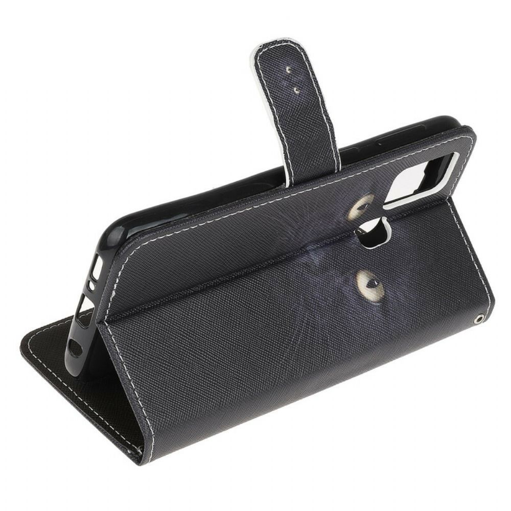 Flip Case Für Samsung Galaxy A21s Mit Kordel Schwarze Katzenaugen Mit Riemen