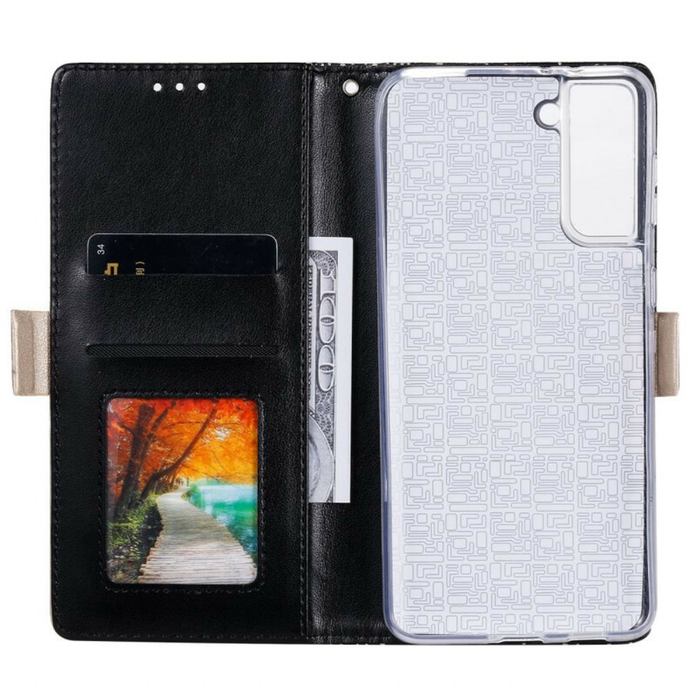 Flip Case Für Samsung Galaxy S21 5G Mit Kordel Geldbörse Mit Spitzenband