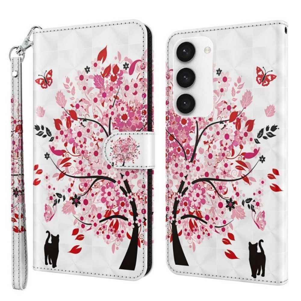 Flip Case Für Samsung Galaxy S23 Plus 5G Mit Kordel Baum Und Riemchenkatze