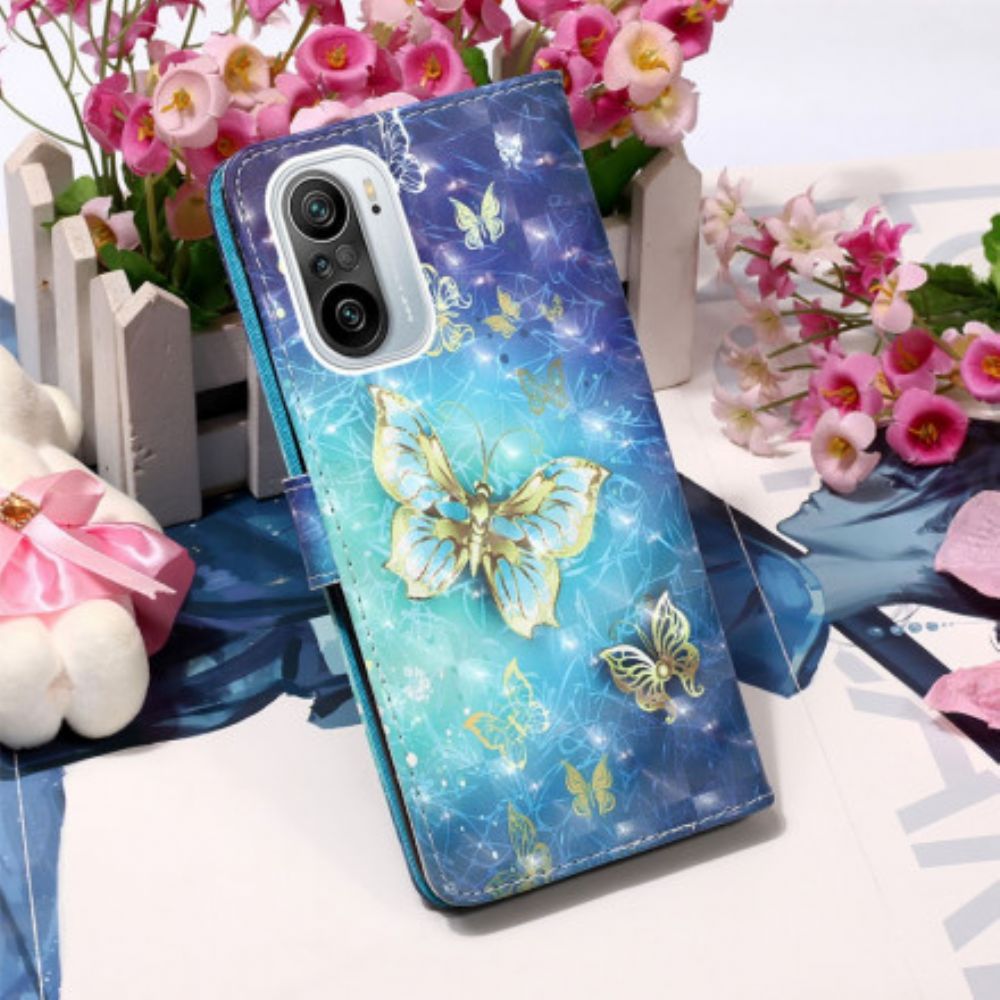 Flip Case Für Xiaomi Mi 11i 5G / Poco F3 Goldene Schmetterlinge