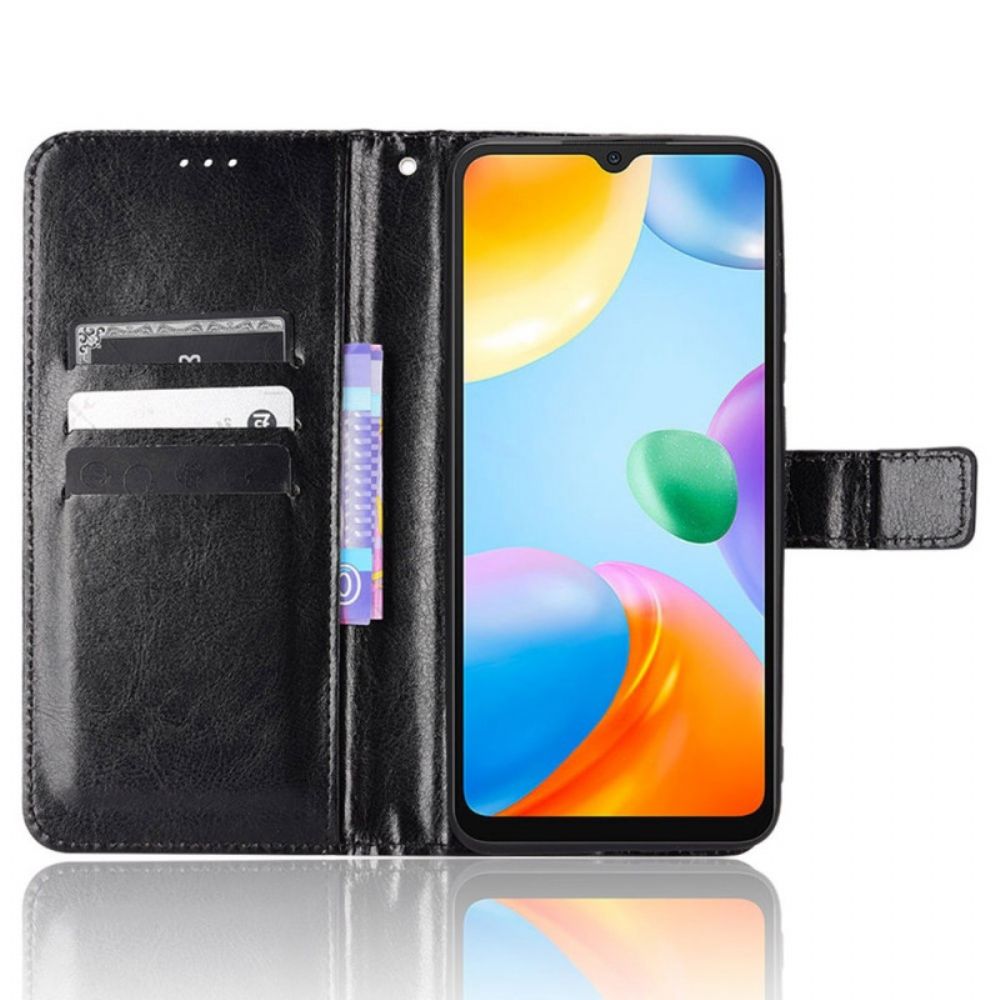 Die auffällige Kunstlederhülle mit Riemen schützt das Xiaomi Redmi 10C optimal und dient gleichzeitig als Geldbörse und Ständer.