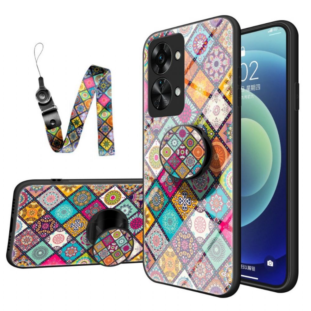 Die Patchwork-Hülle mit Magnethalterung bietet einen anderen und persönlichen Schutz für das OnePlus Nord 2T 5G, das mit einem Umhängeband geliefert wird.