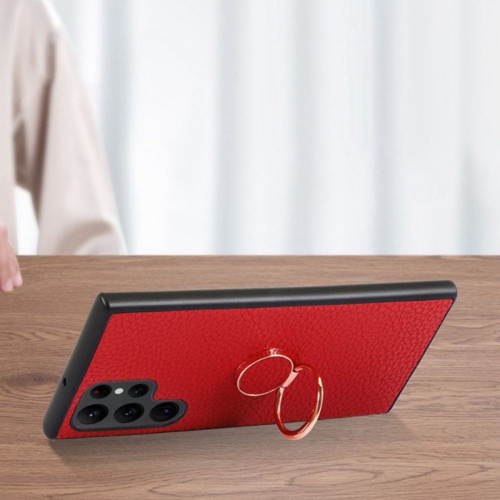 Handyhülle Für Samsung Galaxy S23 Ultra 5G Ringhalter Aus Litschi-kunstleder