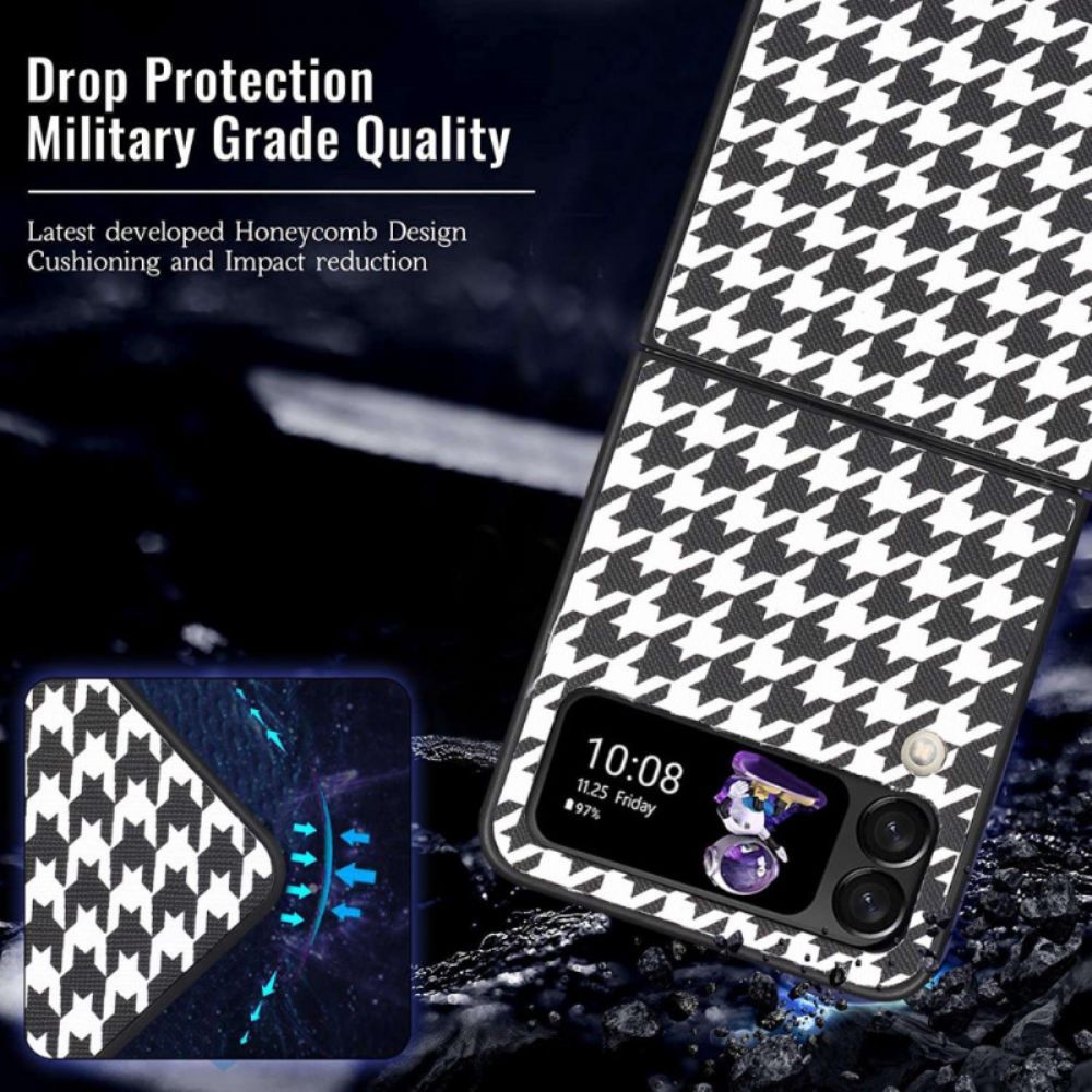 Houndstooth-Stoffhülle für Ihr Samsung Galaxy Z Flip 4. sehr dünn und leicht und extrem widerstandsfähig.