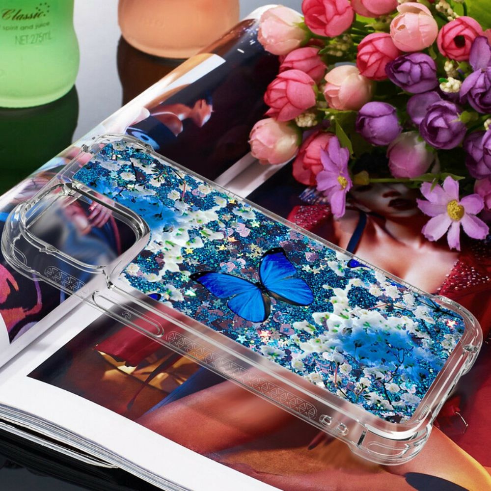 Hülle Für iPhone 13 Pro Blaue Glitzerschmetterlinge