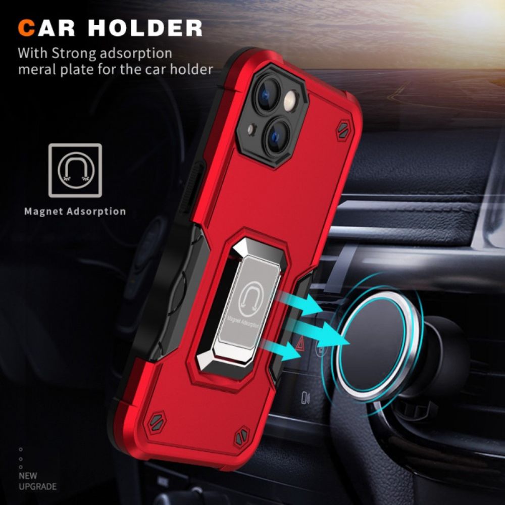 Eine ultra-widerstandsfähige Hülle für Ihr iPhone 14 mit einem Ring, der als Stütze für eine angenehme und sichere Verwendung verwendet werden kann.