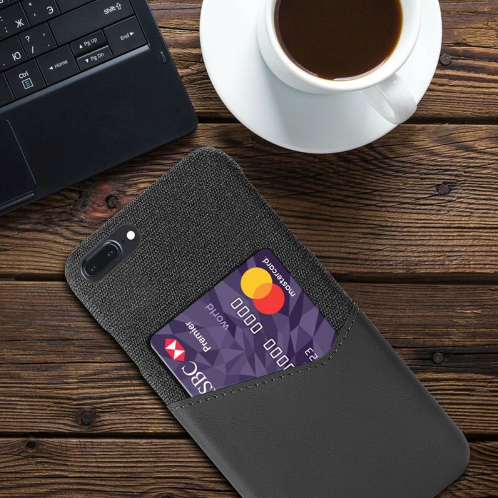 KSQ hat speziell für das iPhone 8 Plus / 7 Plus diese wunderschöne Hülle aus Lederimitat und Stoff mit integriertem Kartenhalter entworfen.