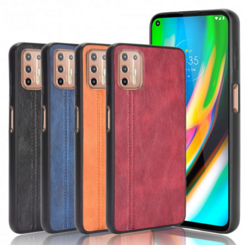 Hülle Für Moto G9 Plus Nähte Lederoptik