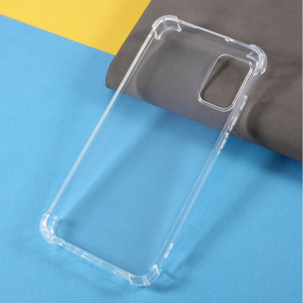 Eine transparente Hülle mit verstärkten Ecken, die das Samsung Galaxy A02s perfekt schützt und dabei das ursprüngliche Design beibehält.