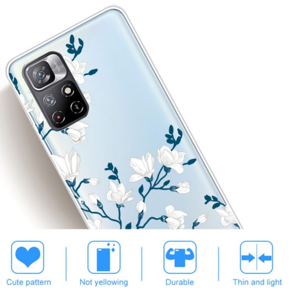 Entdecken Sie diese weiße Blumenhülle aus transparentem Silikon, die das Xiaomi Redmi Note 11 Pro Plus 5G schützt und nur das Blumenmuster zeigt.