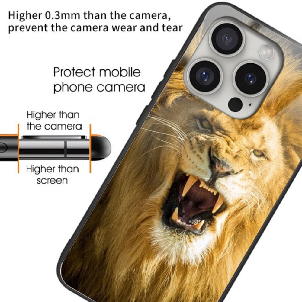 Hülle iPhone 16 Pro Handyhülle Gehärtetes Glas Mit Löwenmuster