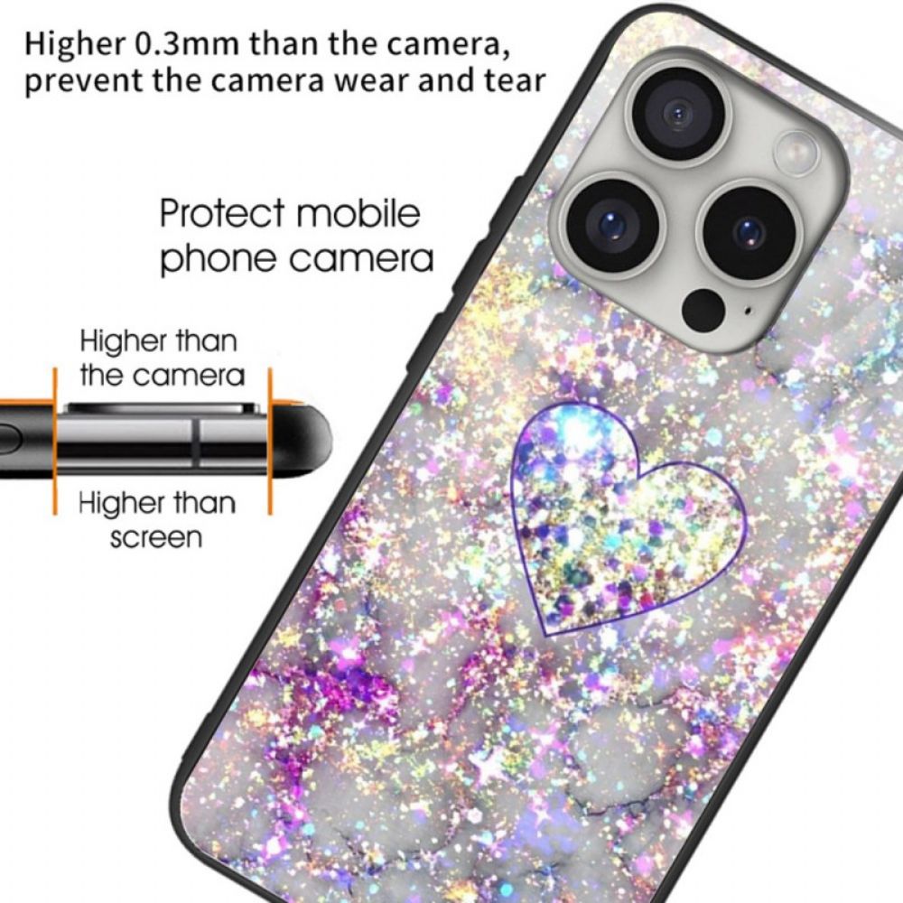 Hülle iPhone 16 Pro Max Handyhülle Glänzendes Herzförmiges Gehärtetes Glas