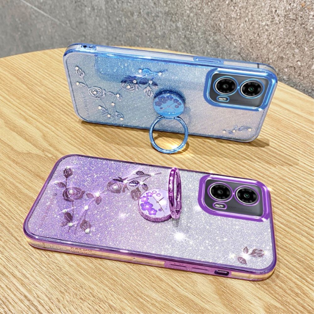 Hülle Motorola Edge 50 Fusion Handyhülle Ringhalter Mit Blumen Und Strasssteinen