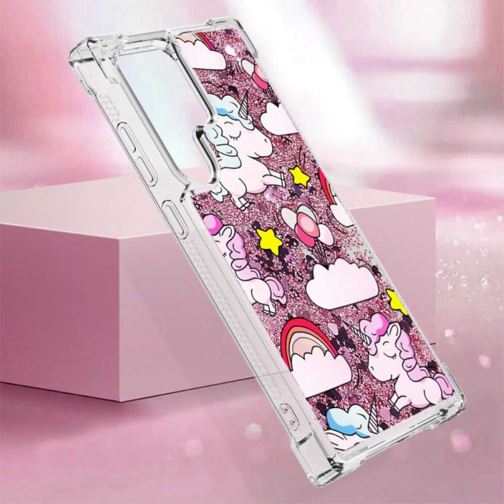 Schauen Sie Sich Unsere Glitzerhülle Für Das Samsung Galaxy S24 Ultra 5G Mit Einem Niedlichen Einhorn- Und Wolkenmuster An.