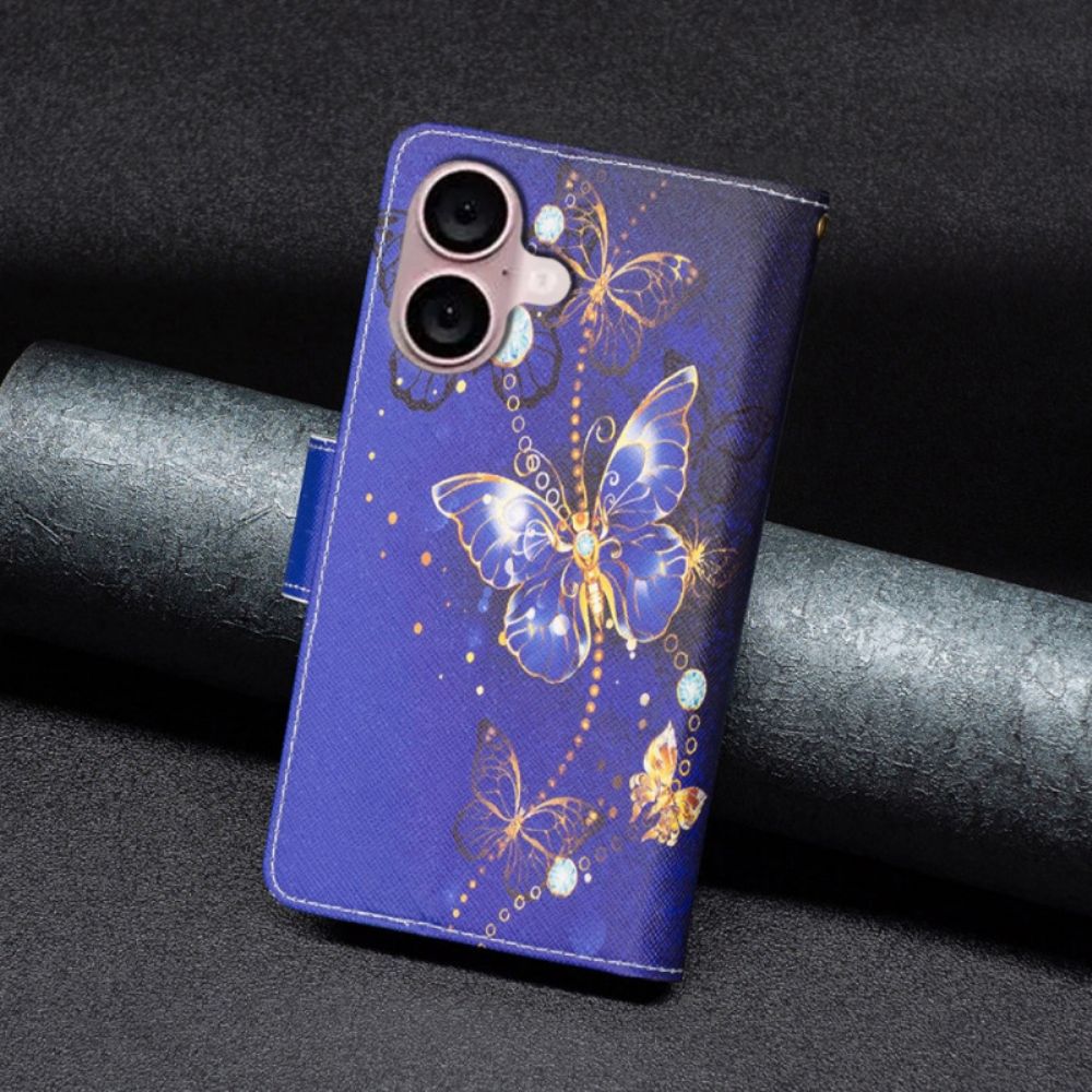 Lederhüllen Für iPhone 16 Lila Schmetterlings-geldbörse