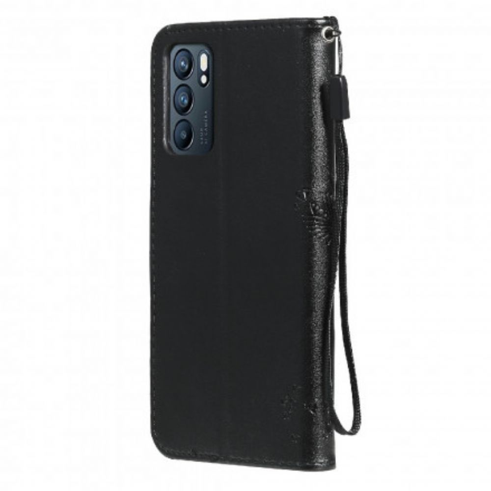 Lederhüllen Für Oppo Reno 6 5G Mit Kordel Baum Und Riemchenkatze