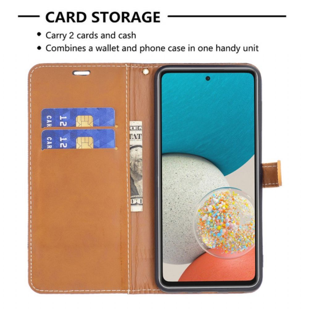 Lederhüllen Für Samsung Galaxy A53 5G Mit Kordel Armband In Stoff- Und Lederoptik