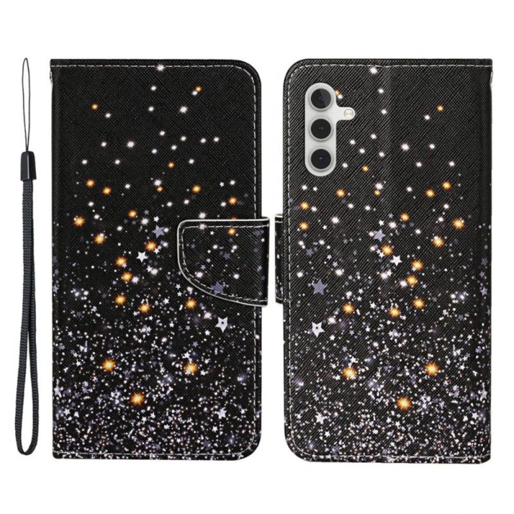 Sichern Sie Ihr Samsung Galaxy A54 5G Mit Dieser Hülle Mit Schwarzem Hintergrund Und Pailletten, Die Mit Einem Riemen Geliefert Wird.