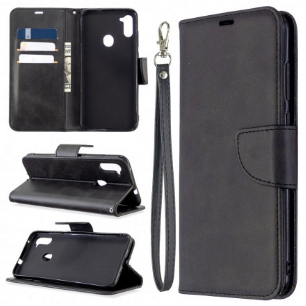 Lederhüllen Für Samsung Galaxy M11 Flip Case Glatte Schräge Klappe