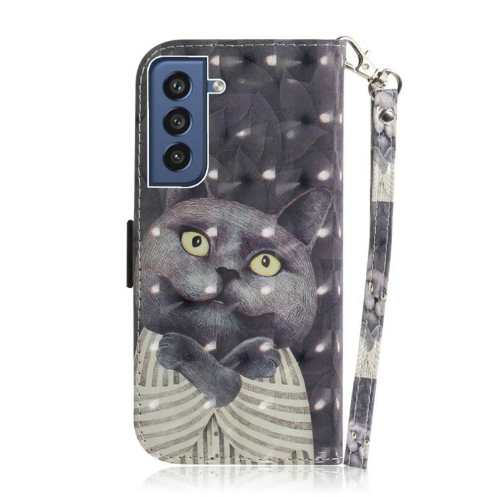 Lederhüllen Für Samsung Galaxy S21 FE Mit Kordel Graue Riemchenkatze