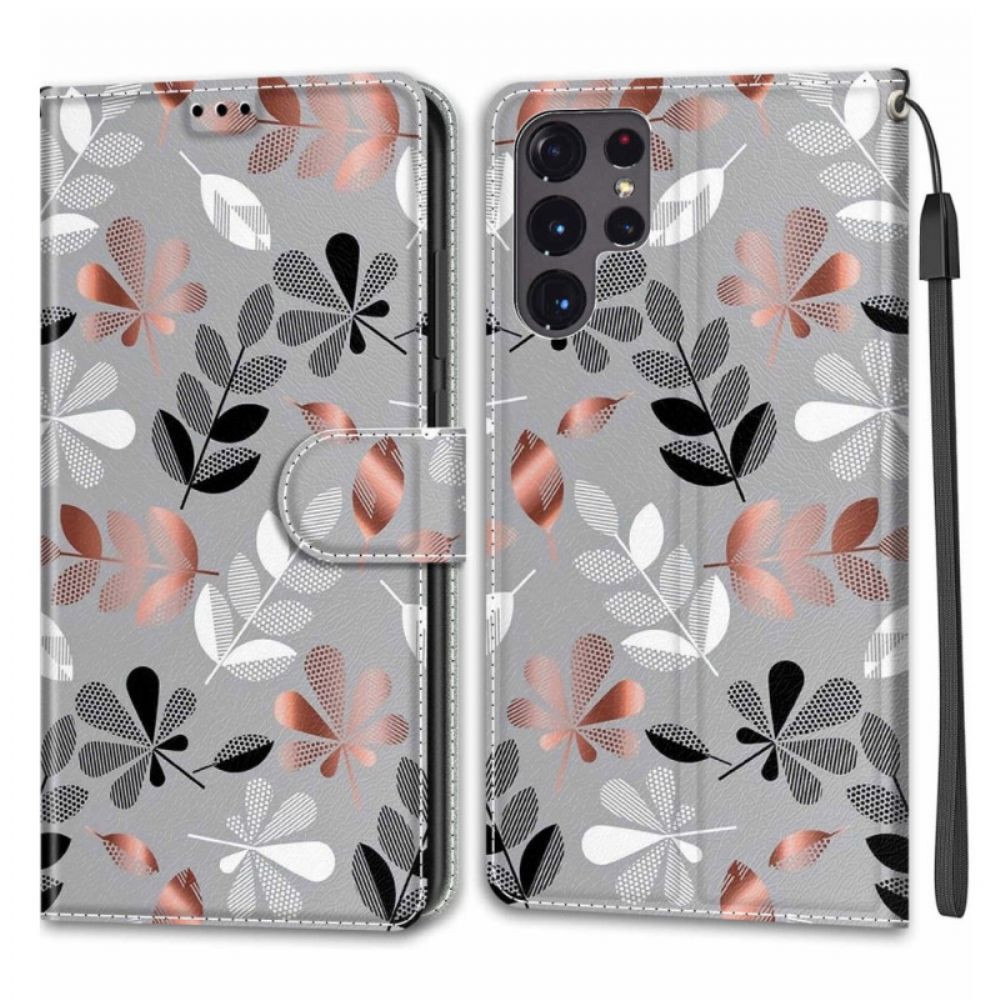 Lederhüllen Für Samsung Galaxy S22 Ultra 5G Blätter Mit Lanyard