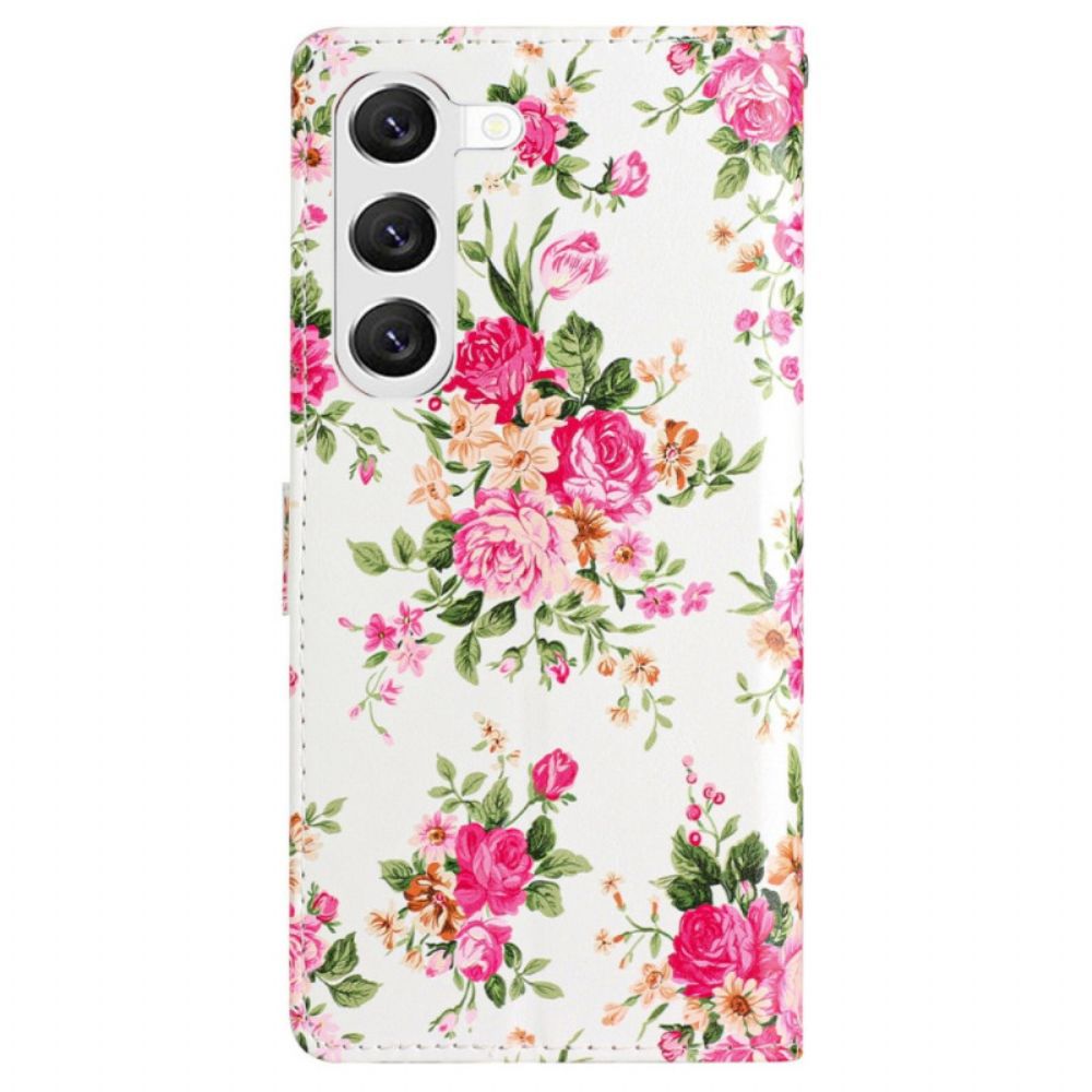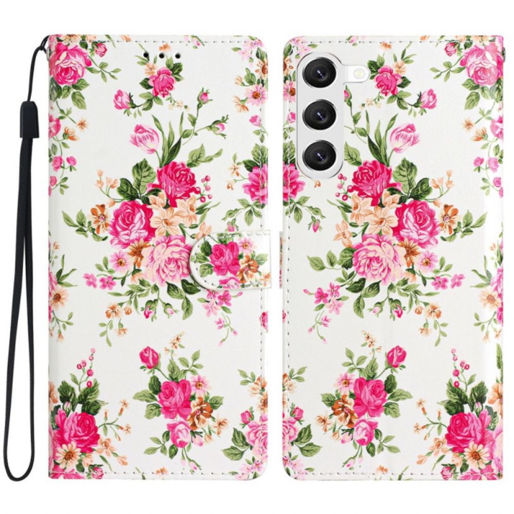 Lederhüllen Für Samsung Galaxy S24 Plus 5g Rote Blumen Mit Riemen