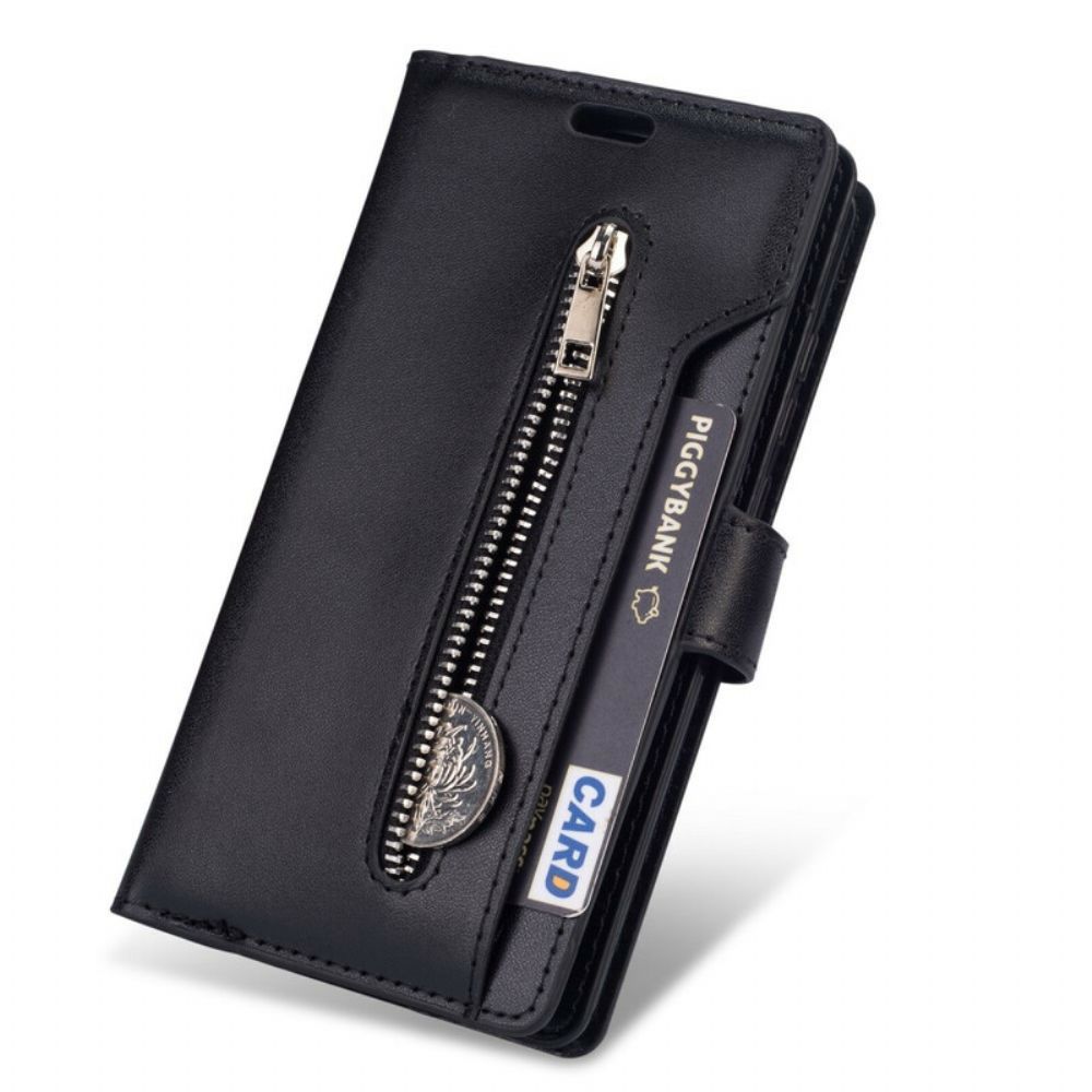 Eine schöne Hülle aus Kunstleder, entworfen für das Xiaomi Redmi Note 8. mit einer praktischen Tasche mit Reißverschluss.
