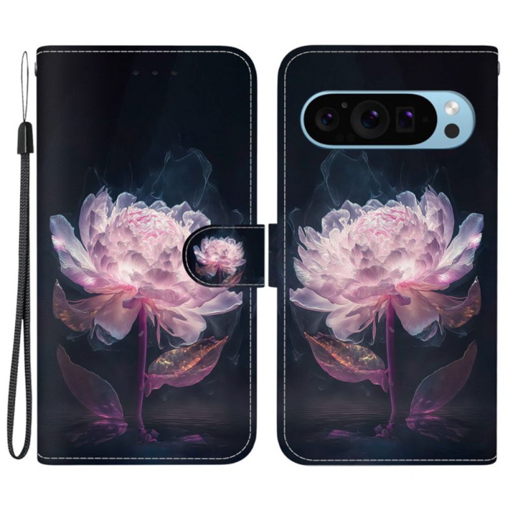 Lederhüllen Google Pixel 9 Pro Handyhülle Lila Pfingstrose Mit Riemen