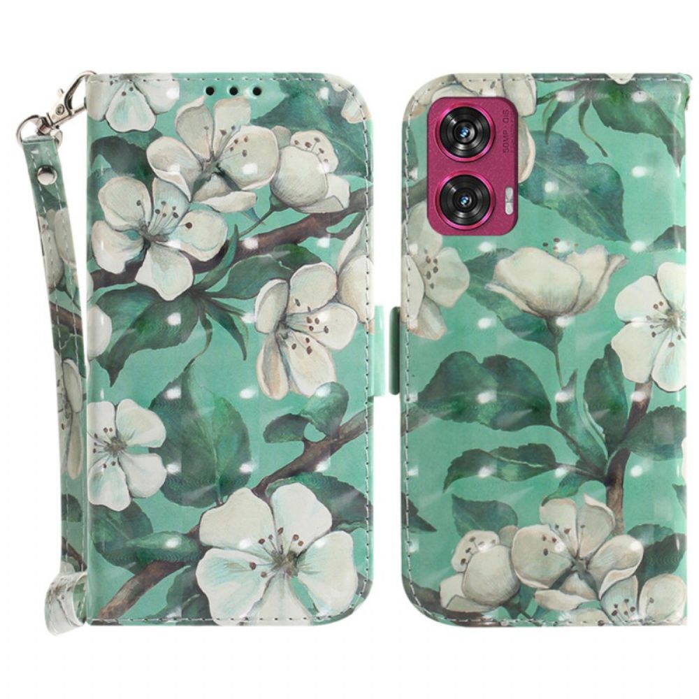 Lederhüllen Motorola Edge 50 Fusion Handyhülle Aquarellblumen Mit Riemen