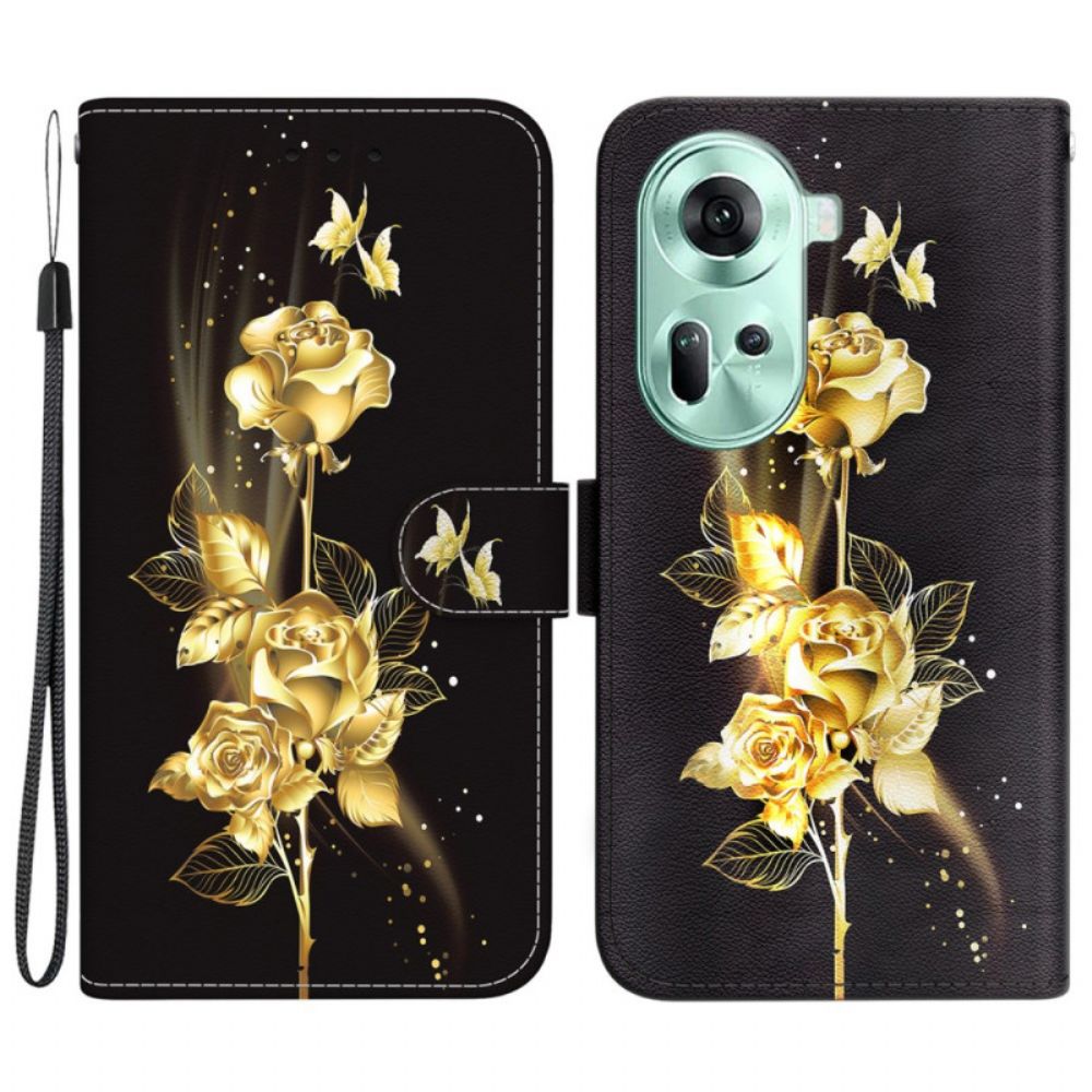Lederhüllen Oppo Reno 11 5g Goldene Und Rosa Schmetterlinge Mit Riemen