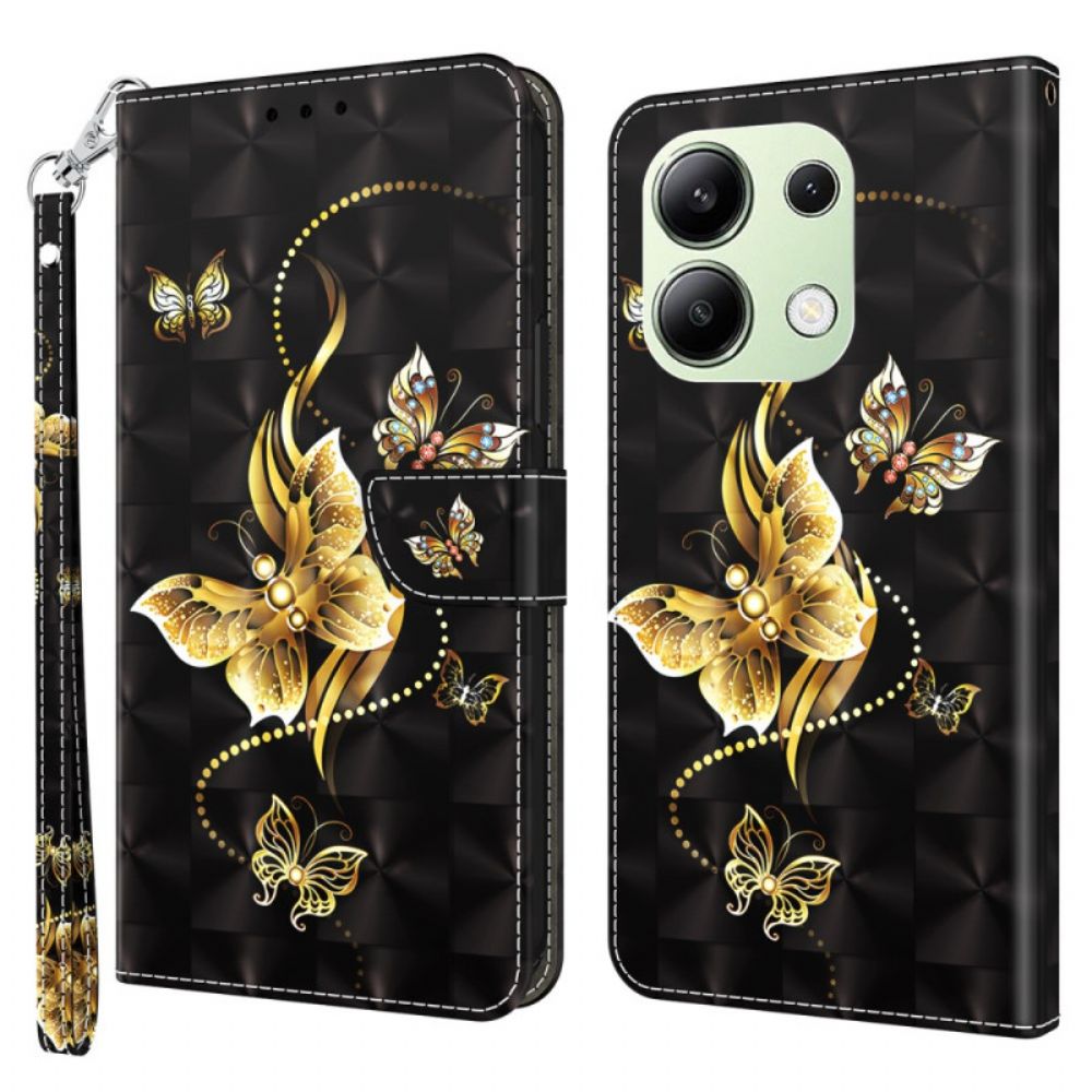 Lederhüllen Xiaomi Redmi Note 13 4g Handyhülle Goldene Schmetterlinge Mit Riemen