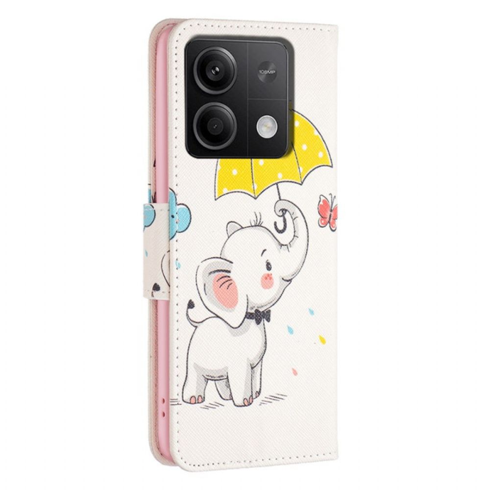 Diese Klapphülle Für Das Xiaomi Redmi Note 13 4G Mit Regenschirm- Und Elefantenmuster Bietet Optimalen Schutz Vor Kratzern, Stürzen Und Stößen.