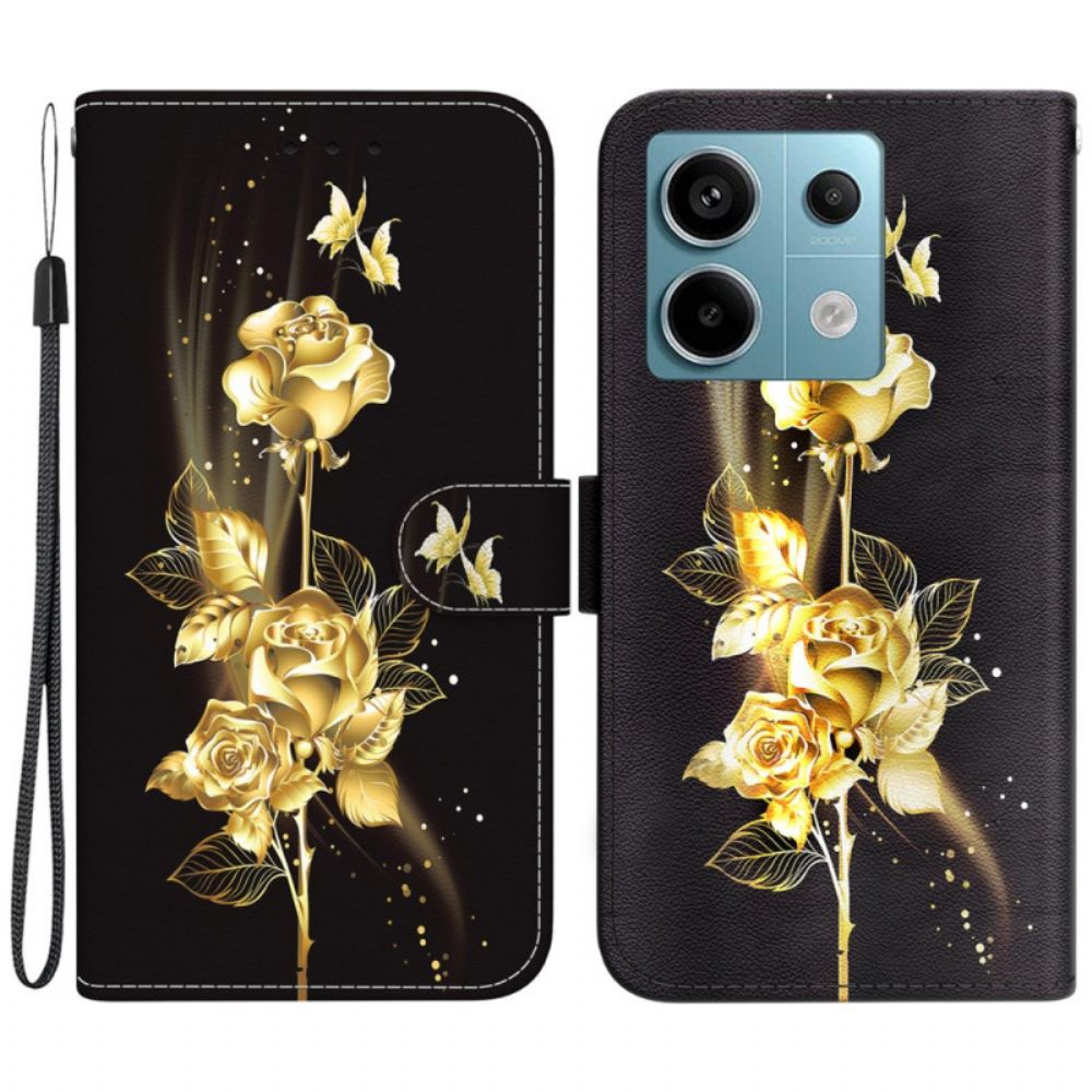 Lederhüllen Xiaomi Redmi Note 13 Pro 5g Goldene Und Rosa Schmetterlinge