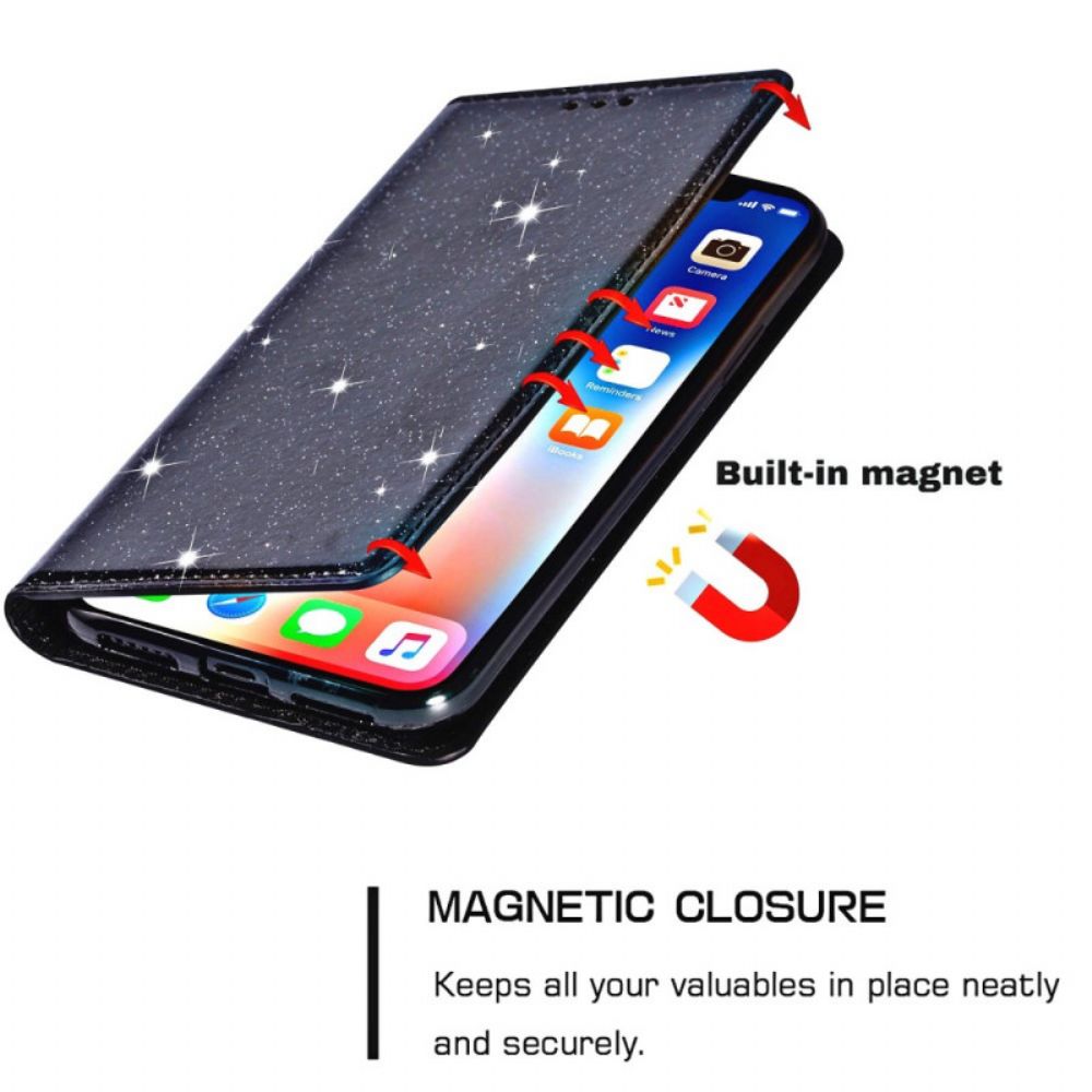 Verbessern Sie den Schutz Ihres Samsung Galaxy S22 5G mit diesem Flip-Cover im Glitzerstil und nutzen Sie seine Brieftaschenfunktionen